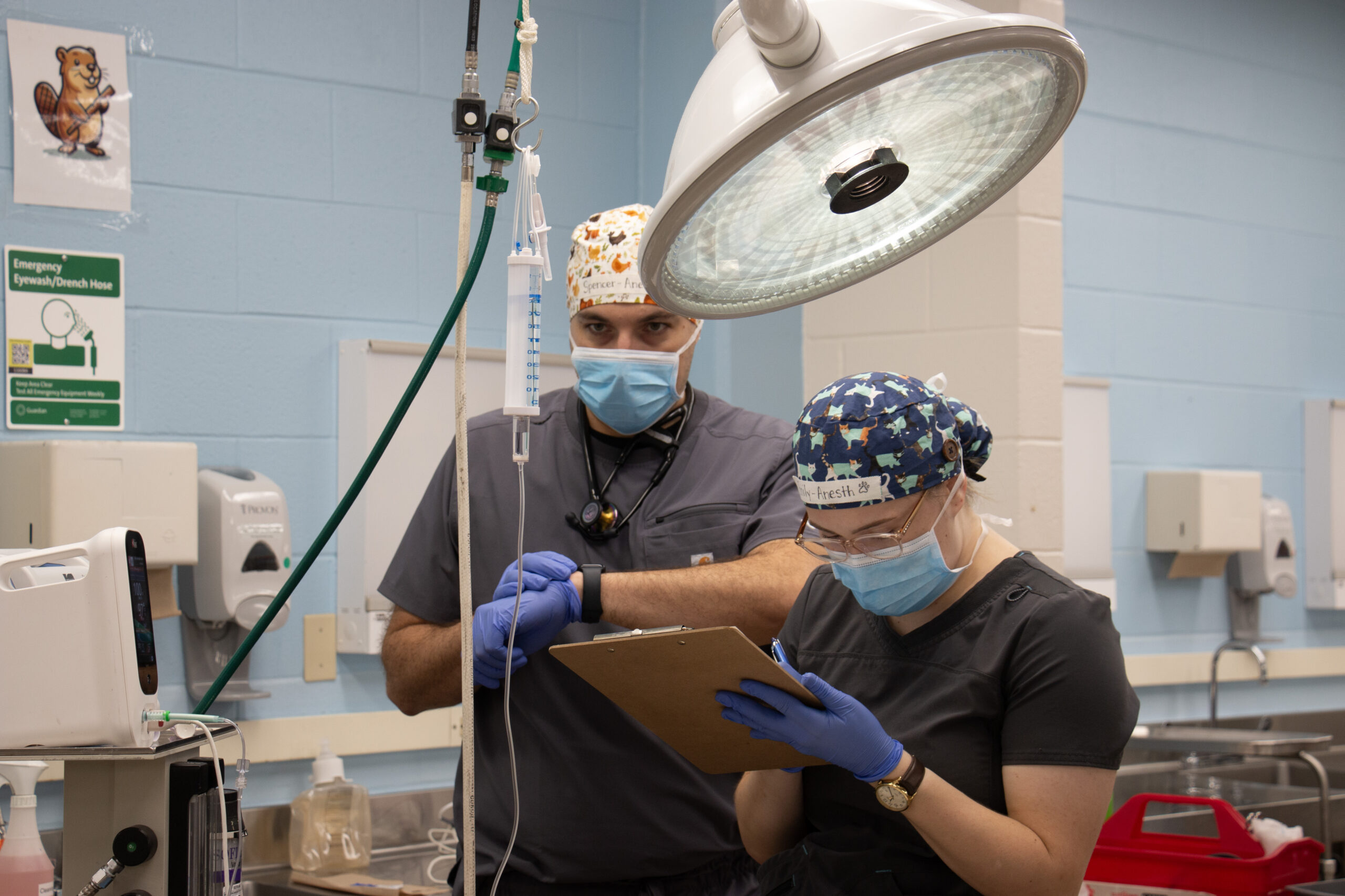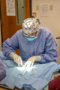 “Surgery day is a long day,” Verbrugge says. “It’s a lot to remember and a lot of things that the students haven’t done before. We do quite a few prep labs, skills check-ins, and orientations to get them prepared, but that also can contribute to a bit of emotional wind up in anticipation.”
